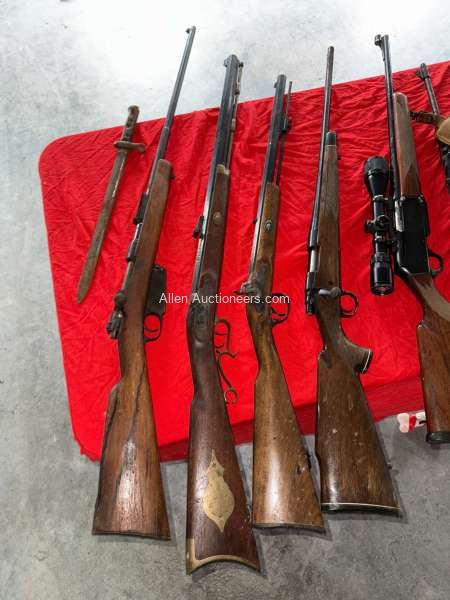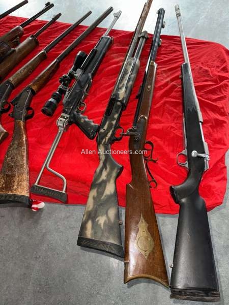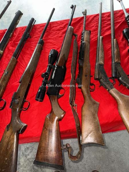 Ruger Mini 14,Ruger Mini 30, Sears 410 Bolt Action Shotgun, Browning 270 Rifle, Mossberg 12g Shotgun, 12g Pump Shotgun, Black powder Rifles, Winchester 22 Model 121, Marlin Model 99 ML22, New England 410, Browning 270Semi Auto, Remington Model 700, Mosburg Model 340K .22 (Broken Stock), Daisy Model 25 BB gun, Rosman Model 140 .22, Ruger Ranger .22