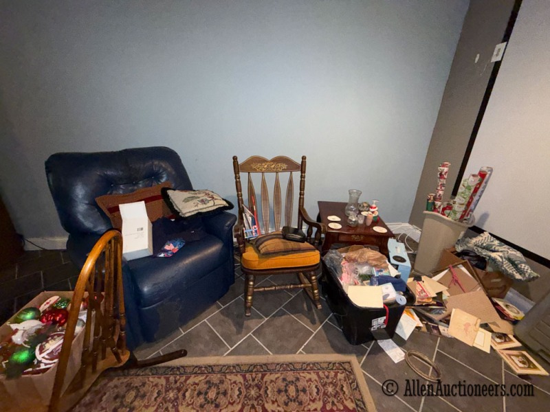 LG washer and dryer, Refrigerator, Platform rockers, Oak cabinets, cast iron match holder, recliners, lift chair, micro suede, electric couch, curio cabinets, precious moments, roll top, office desk, queen size sleigh bed, cherry dresser, Seth Thomas. All clocks, China cabinet, dishes, Kitchen utensils, figurines, Maple telephone, bench, the hope chest, washboard, brass chafing pan, oil lamps, massage table, milk cans, Kirby Heritage, Vacuum, Trucks, Christmas decorations, blow molds, step ladder, Gone with the wind lamp shade, jumper cables, Charlie’s Chips 10, aluminum 6 foot step Ladder, miscellaneous vacuum sweepers, outdoor folding chairs, bird feeders, fiberglass 6 foot step ladder, Montgomery Ward Air compressor, copper tubing, floor fan, hedge trimmers, miscellaneous dressers and end tables, 18 inch real type, hyper tuff, push, mower, cable choker, wheelbarrow, electric leaf blower, new in the box. Barbecue grill, concrete, statuary, yard decorations, cast iron, flowerpots, concrete statuary, lions, and a basement full of packed boxes that haven’t been open in over 15 years, there are a lot of items not listed as much of it was packed up before we got there to see it.